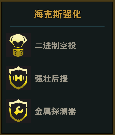 海克斯强化选择:羽量级I/II/III、泰坦之劲 废品站 二进制、极客心魂转、DD街区、狩猎律动、短兵之刃、星界赐福