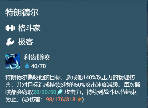 极客巨魔本质是一套2、3费赌狗阵容,阵容克制当前大火的挑战永恩。只要直接顶永恩脸可以降低永恩攻击力速杀。