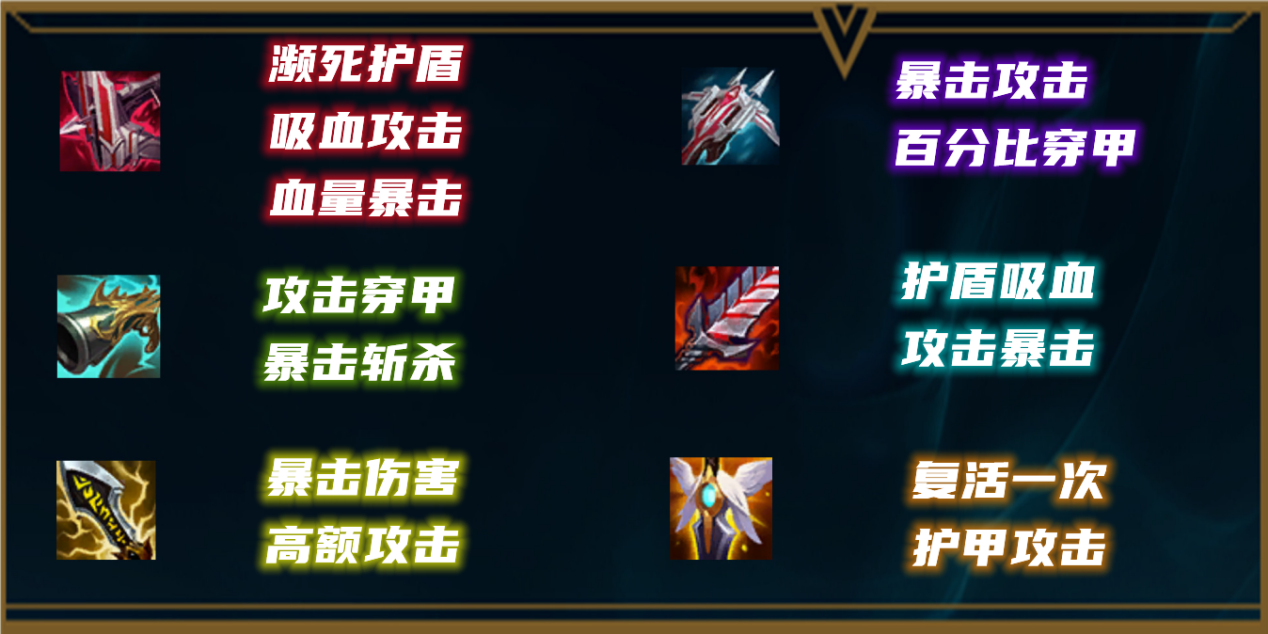 莎弥拉装备选择没有太多变化,只不过会根据阵容来调整出装顺序,首先神话装备选择不朽盾弓,目前还没有其他合适的代替装备,盾弓所有的属性都非常契合莎弥拉,尤其是濒死的护盾吸血和被动增加最大生命值都让莎弥拉这个进场英雄有更高的容错率。第二件装备绝大部分情况都选择收集者,这个装备的斩杀和穿甲对于莎弥拉的收割十分重要,有了这个装备就不会出现残血逃跑的情况。第三件装备顺风可以先做无尽增加输出,如果对方前排坦度比较高就先做多米尼克领主的致意增加穿甲能力。鞋子选择布甲鞋。最后补一件饮血剑增加护盾,鞋子最后可以换成复活甲。