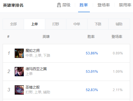 以上就是当前版本胜率最高的三大上单,喜欢玩上单的同学,快去练习起来吧~