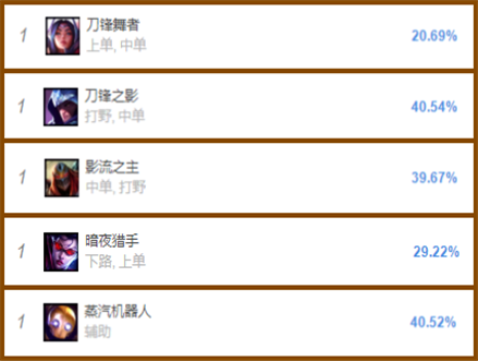 以上就是当前版本韩服五路禁用率最高的英雄,在他们被放出来的时候,快去使用他们进行上分吧~