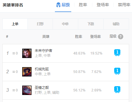 12.1版本上单的生态发生了微妙的变化,长手英雄展现出了很强大的压制力,战士英雄也能很好地上分。下面我们就来看看T1梯队的三大上单吧~