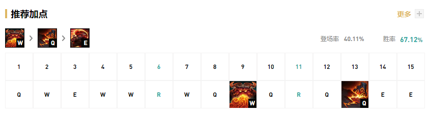 奥恩是主W副Q,W技能在前期是奥恩主要的伤害技能来源,Q技能则可以让奥恩快速的立柱子打出控制。