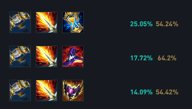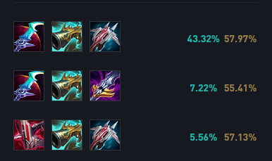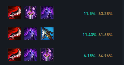神话装备首选暮刃,暮刃的隐身与螳螂的R技能更加搭配;第二件你装备可以选择幽梦增加一个移速Gank能力,也可以选择夜之锋刃提供一个保护罩;第三件可以选择穿甲顺便提供减速效果。
