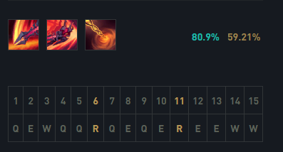 前期和远程英雄对线可以使用Q技能来打消耗或者是补刀,等到三级之后QE的配合拉近距离就能很容易攻击到敌人,衔接上W技能来增加外圈Q的命中率,贴脸后被动的普攻加上不灭之握的效果打出来吸血,六级有大招在敌人释放完技能的时候直接开启大灭快速贴脸配合技能打伤害,强大的吸血能力也可以让剑魔快速恢复,后期团战装备具备后AOE伤害就爆炸了,一定要注意外圈Q的命中率。
