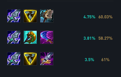 贾克斯第一件装备一定要选破败,有了破败贾克斯的攻速与回复就有了保证。第二件装备出神话装备三项。第三件则可以根据情况来选择,如果对面AP较多,可以根据形势来选择出智慧末刃还是大饮魔刀,也可以选择单带去处破舰者。