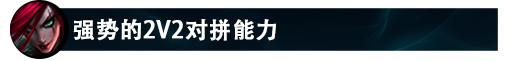 一把游戏的对局走向,中野的联动是你不可能逃离的致胜点,作为可搭配大多数打野的中单,卡特琳娜拥有着迷人的野区2V2对抗能力,她可以配合打野快速解决一位对手,并刷新技能收拾残局。