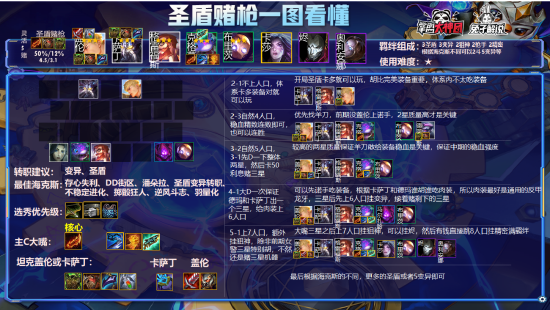 圣盾赌枪现在赌的方式和以前有所不同,核心在于跟着高分段节奏走的几波提速和后期挂高质量卡这些方面,让圣盾赌枪的强度上限更高,节奏更快,只要是比较胡圣盾的卡,不论什么变异都是可以赌枪的。