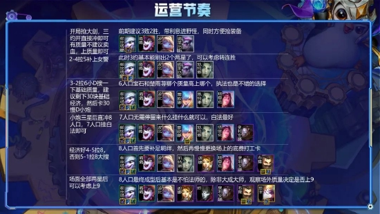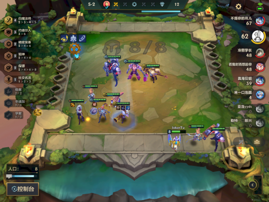 8人口首先要补足羁绊,然后再慢慢更换场上的底费打工卡