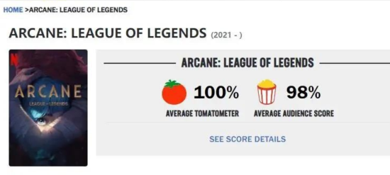 《英雄联盟:双城之战》作为《英雄联盟》的官方动画剧集,由拳头游戏耗时近六年制作,首播取得了 2021 年 11 月 Netflix 全球第一的成绩,并连续三周在全球 52 个国家和地区占据榜单前十,烂番茄指数达到了罕见的 100% 好评。剧集近期在第 49 届安妮奖斩获九项大奖,成为当年获奖最多的电视节目,其中就包括最佳电视/流媒体类动画 、最佳角色设计和最佳编剧奖。同时,在国内也获得了豆瓣9.1分的好评以及多家业内权威意见领袖、主流及行业媒体的认可,动画衍生内容也多次登上微博热搜榜,被玩家赞誉为“游改漫巅峰之作”。这次成功获得安妮奖九个提名并且全部获奖,也可谓实至名归。