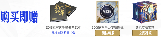 [为了回馈广大召唤师对EDG和英雄联盟官方的支持,本次EDG冠军手办系列活动,除了有丰富的赠品加持和新品即享的优惠待遇,还有诸多神秘惊喜彩蛋等待你的挖掘!快来加入为EDG助力,解锁更多惊喜吧!