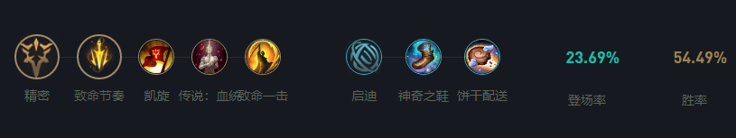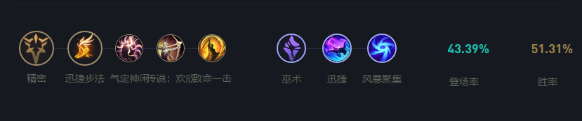 烬选择迅捷步法,因为烬的四发子弹,特别是最后一发子弹适合来打消耗,同时触发迅捷步法,可以让烬有一定的回复,气定神闲增加烬的回蓝,欢欣增加攻速,致命一击搭配上烬的高爆发,可以让烬团战收割。