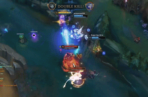 开局我们在线上尽可能用1技能曼舞手雷来击杀残血小兵弹射到敌方英雄身上来进行消耗,当我们对敌方造成伤害时,我们用2技能致命华彩给予控制,或者让辅助进行先手控制,我们补上控制时间也是很好的选择,从而打出一定的对局优势。由于烬独有的远程技能,当河道或者野区发生小规模团战或者是要去支援的时候,烬的技能范围可以帮助烬第一时间支援到队友,从而在整个战局获得优势。