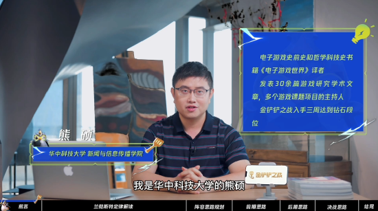 而在双人作战的娱乐赛结束之后,本次《金铲铲之战》高校杯邀请赛总决赛的重头戏最终决赛也正式到来。不过,在总决赛正式开启之前,官方还发布了一个非常有意思的短视频,从短视频中可以了解到,华中科技大学新闻与信息传播学院的熊硕老师特意为《金铲铲之战》准备了一个学霸级别的攻略。从兰彻斯特定律、阵容思路规划、前期思路、后期思路、决战思路为我们从科学的角度带来了《金铲铲之战》的正确玩法。不得不说,真正能够掌握熊硕老师科学玩法的玩家,相信上个钻石还是妥妥的。