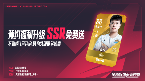 官方还准备了不少预约福利,除点券、签约券等备战福利外,预约福利再次升级。现在预约就送SSR选手Bin,地火双杀、女刀天秀都是Bin神的世界赛名场面,期待这员大将能在玩家的手下再次大放异彩!