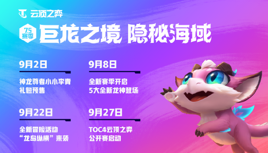 9月8日,《英雄联盟云顶之弈》新赛季“巨龙之境”将正式开启,神龙尊者小小李青华丽亮相,带领大家在龙岛开启全新探险!