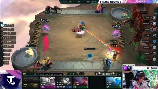 第四局比赛结束,因为已经有5名选手拿到夺冠资格,比赛节奏本来就已经让人非常窒息。更何况来自日本的Title选手拿到超级加倍开局打出一波7连胜的同时拿到龙神之魂,在秘宝龙结束后就上九开出六龙神,让前半场比赛的节奏一直笼罩在他的阴影之下。但也正是这一场,CN赛区的选手们,将CN赛区的团结展现得淋漓尽致。先是迅哥依靠七金鳞龙提供的经济,跟上Title的节奏,在秘宝龙结束后同步上九D牌,抢夺Title的龙神牌,延缓其成型速度。随后,是HereWeGo的好事成双黯灵龙,在六龙神阵容未大成之前,利用狮子狗关键对位,打赢Title两波,将其血量打入斩杀线。最后,幻灭选手的彩色瞄准镜永恩,挥动手中屠刀,极限带走敖兴,手刃恶龙的同时也送给Title选手一个“不眠之夜”,与迅哥、HereWeGo三人携手进入决赛圈。决赛圈,迅哥的质量远超其他三人,轻松拿下胜利。