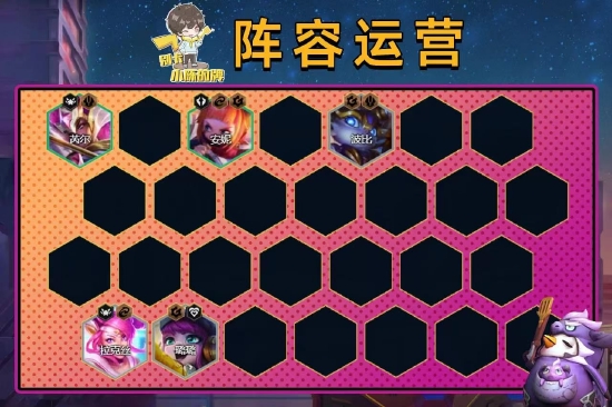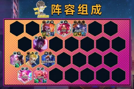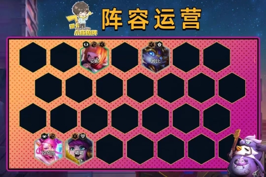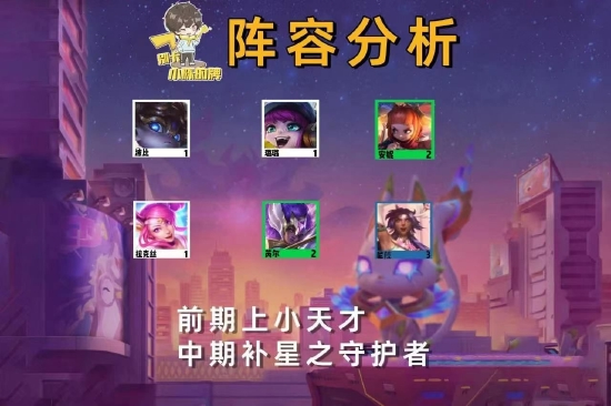 2阶段:2-1升四人口,优先用三小天才+拉克丝过渡,前期法强装备包括朔极之矛都可以给予拉克丝使用;