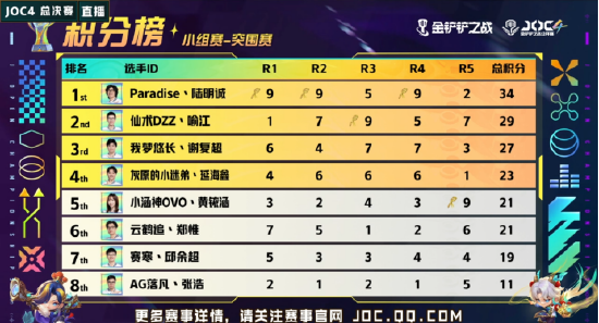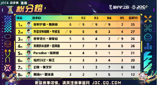 与此同时我们也惊喜的发现,在全新赛制的加持下,JOC4全国总决赛的舞台上出现了不少新生力量,小巨人永远的神丶曾鼎文、反射护盾、魏跃峰、天空没有极限丶李成玉、Paradise丶陆明诚等首次亮相的新选手均有出色发挥,面对老牌实力选手毫不怯场,共同为所有观众带来一场酣畅淋漓的巅峰对决。